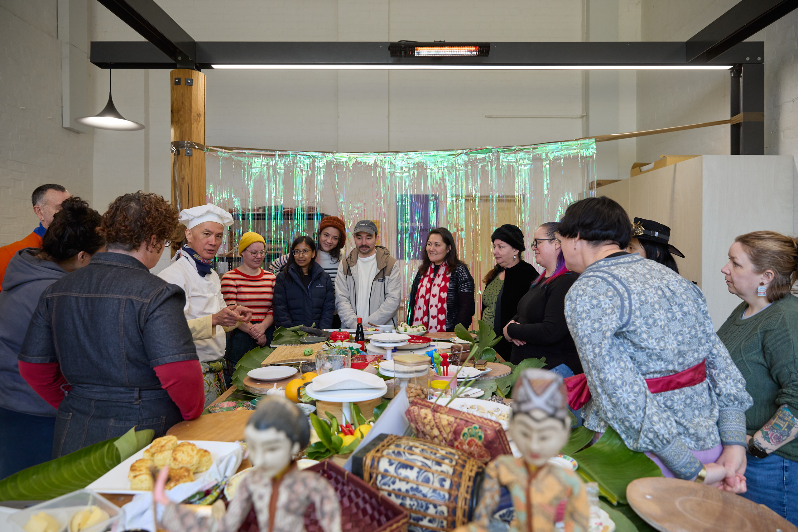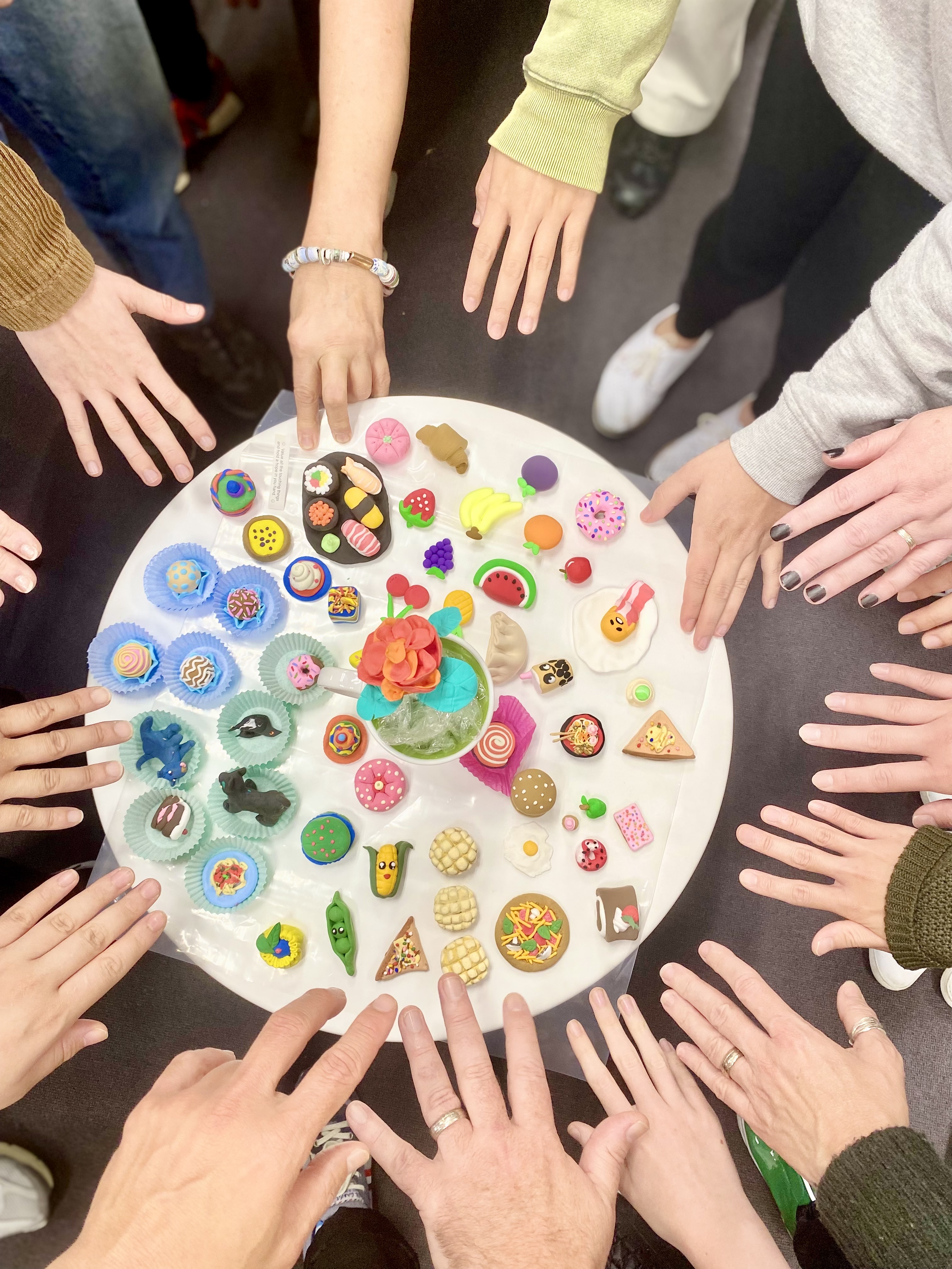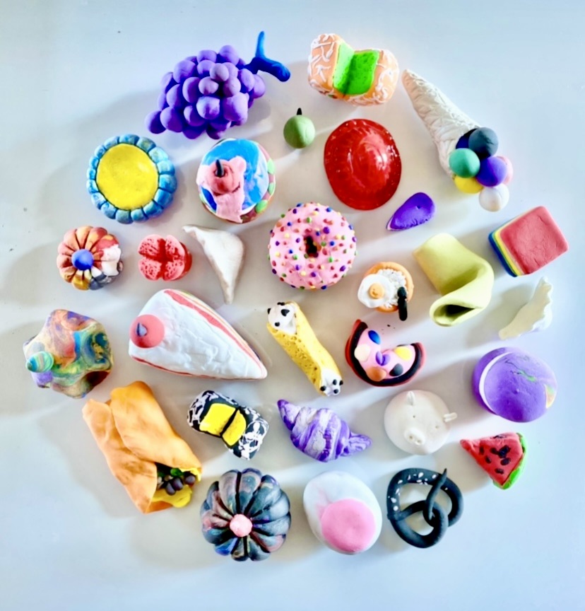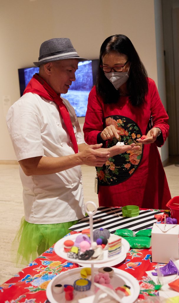 Making clay food workshop with interns Ryuichi Fujimura and Kyati Suharto at the Art Gallery of NSW, part of The Way We Eat Exhibition 2022 – art after hours, curator by Tian Zhang. Photo credit by Jenni Carter