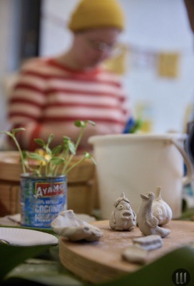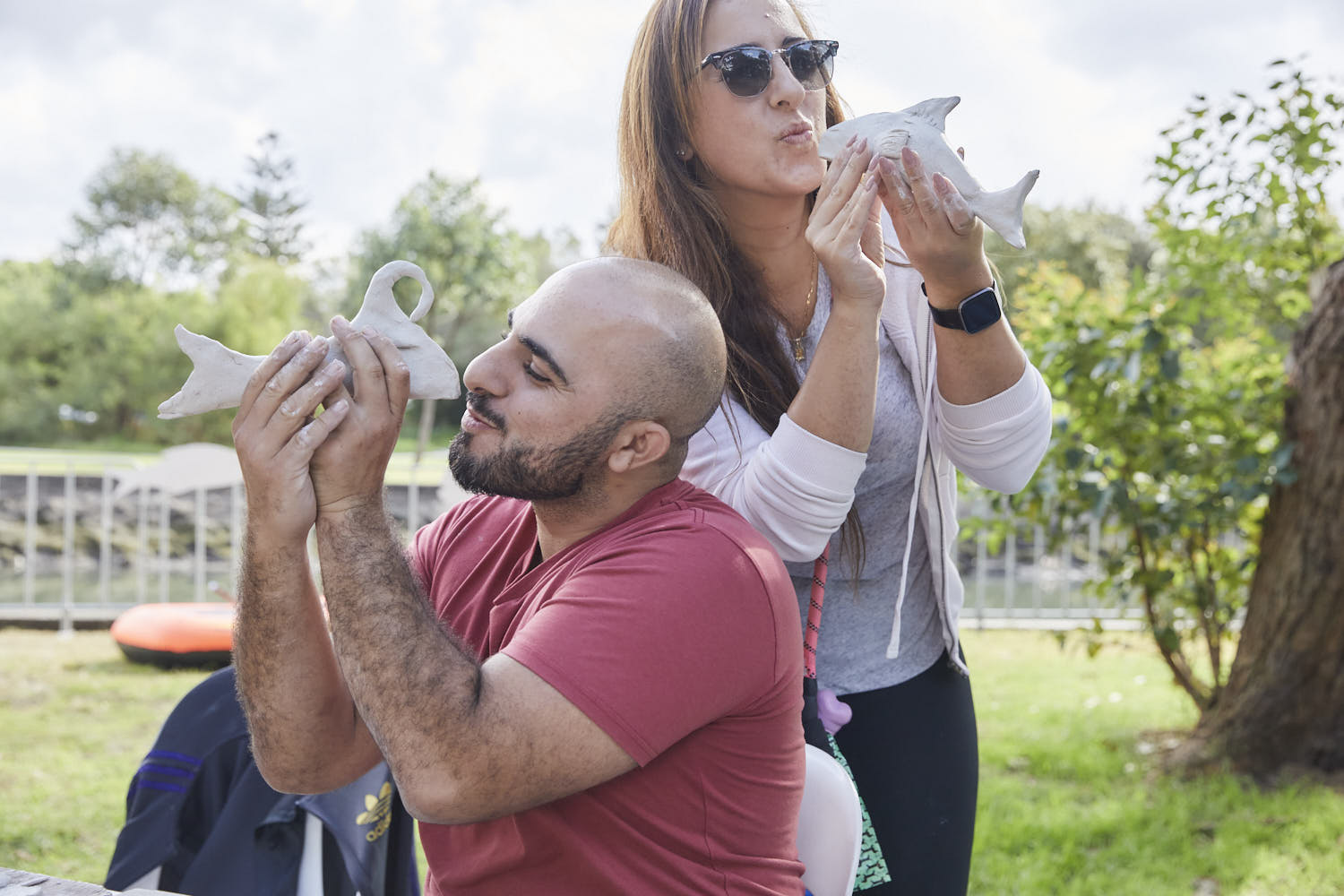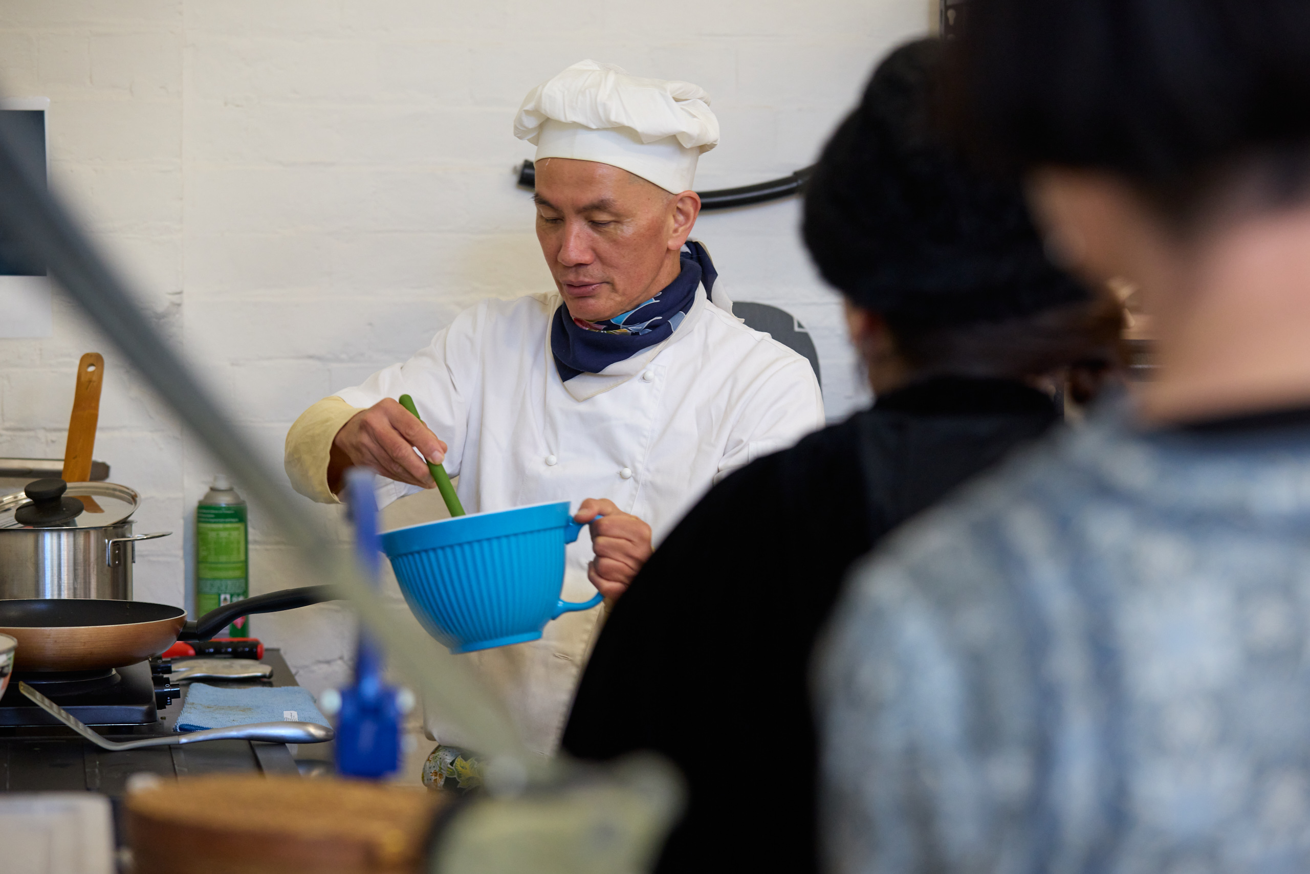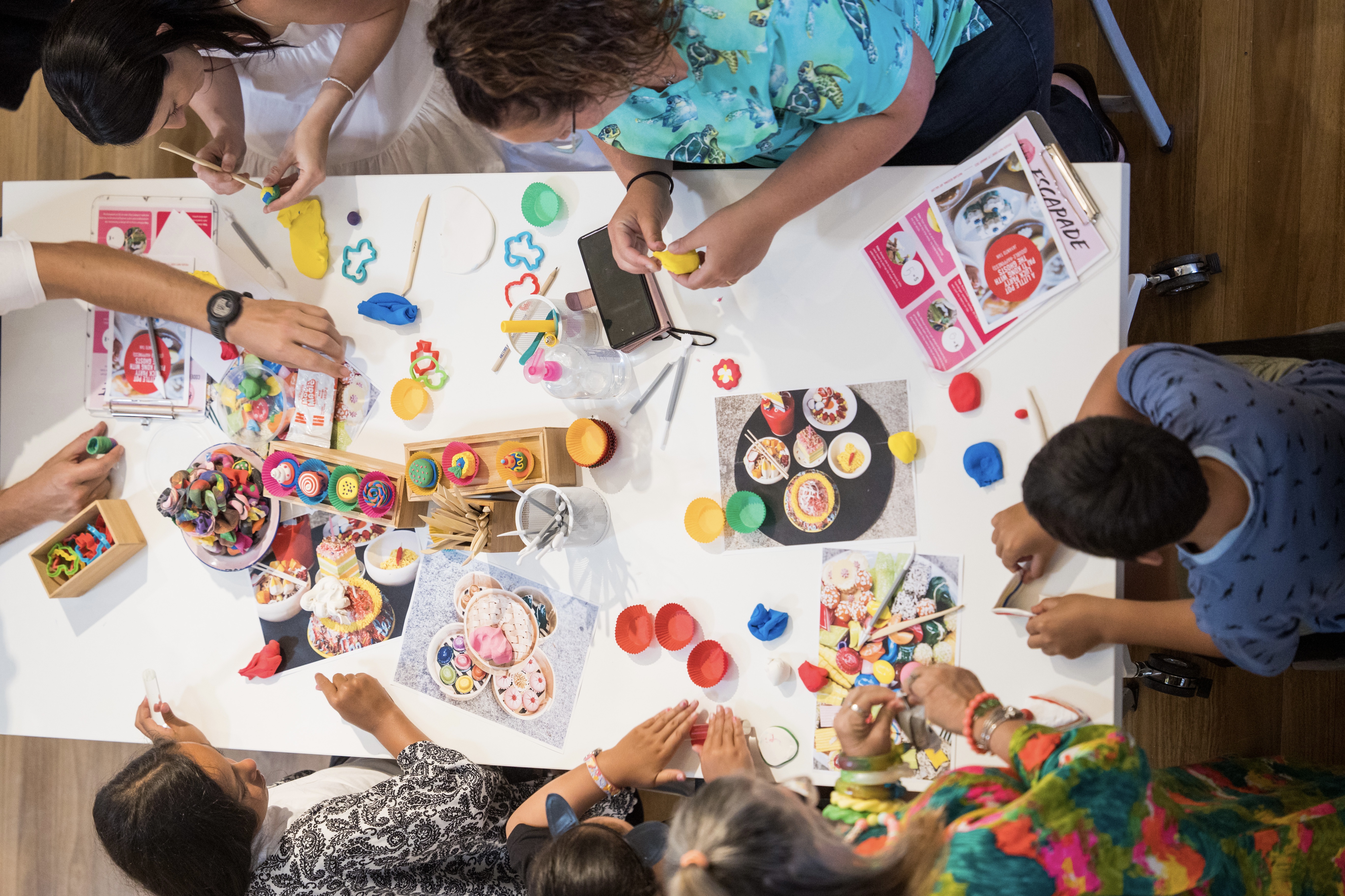 Making clay food workshop with interns Ryuichi Fujimura and Kyati Suharto at the Art Gallery of NSW, part of The Way We Eat Exhibition 2022 – art after hours, curator by Tian Zhang. Photo credit by Jenni Carter