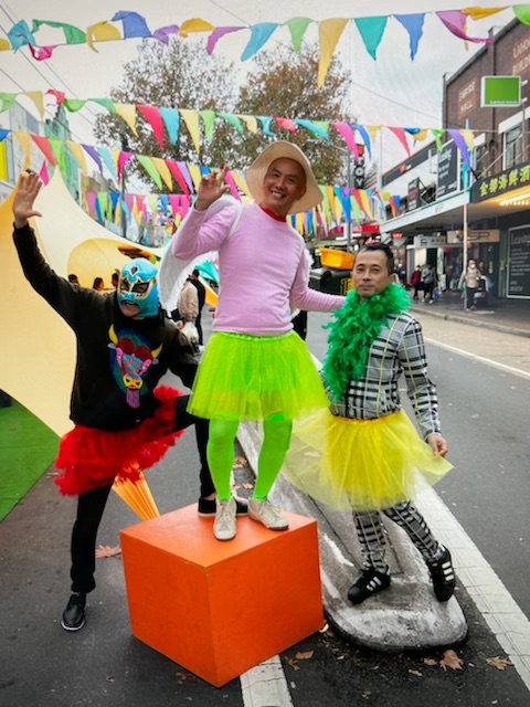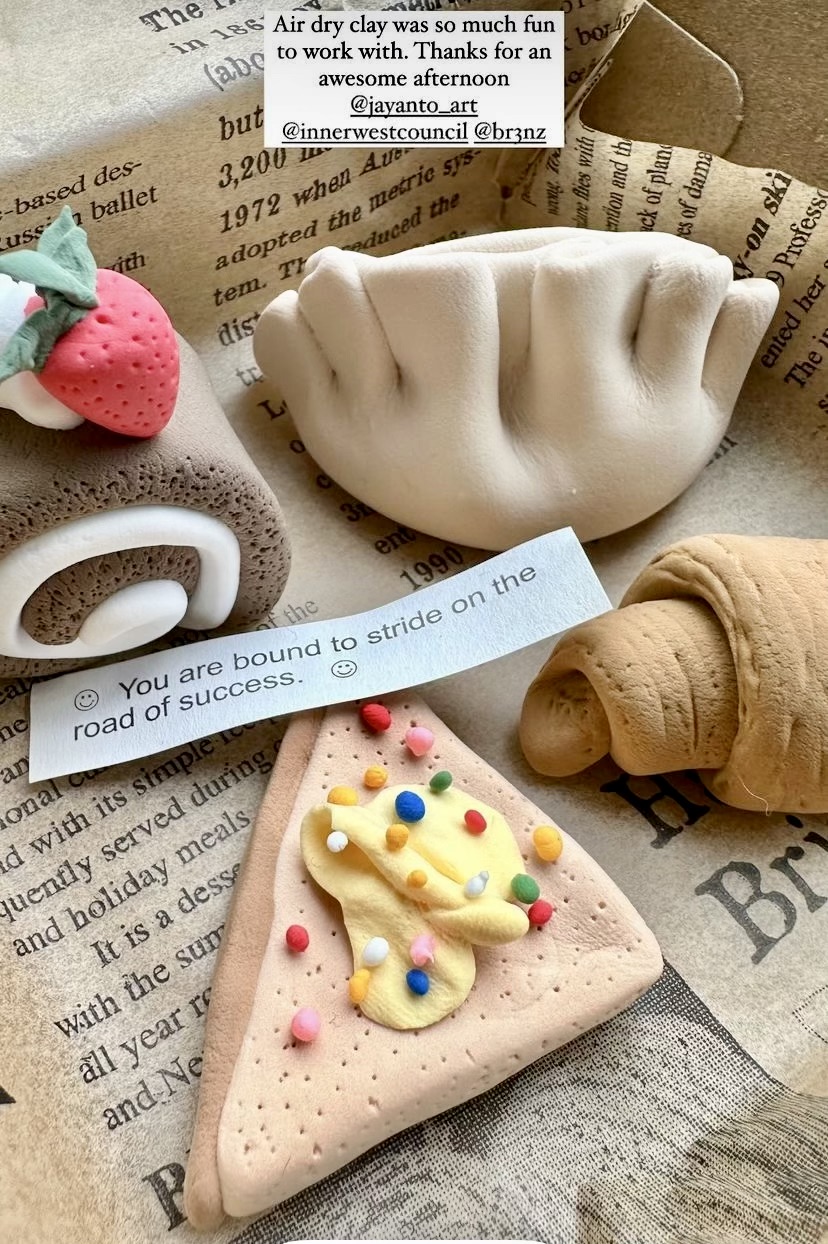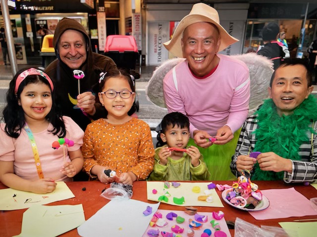 Fairy Hands in Fox’s Lane 2022, curator by Jayanto Tan, Ryuichi Fujimura, Carlos Gomes, Kyati and Kartika Suharto in making colourful clay fortune cookies workshop, art installation and roving performance at the Fox’s Lane Ashfield Inner West Council. Photo credit by Daniel Kukec