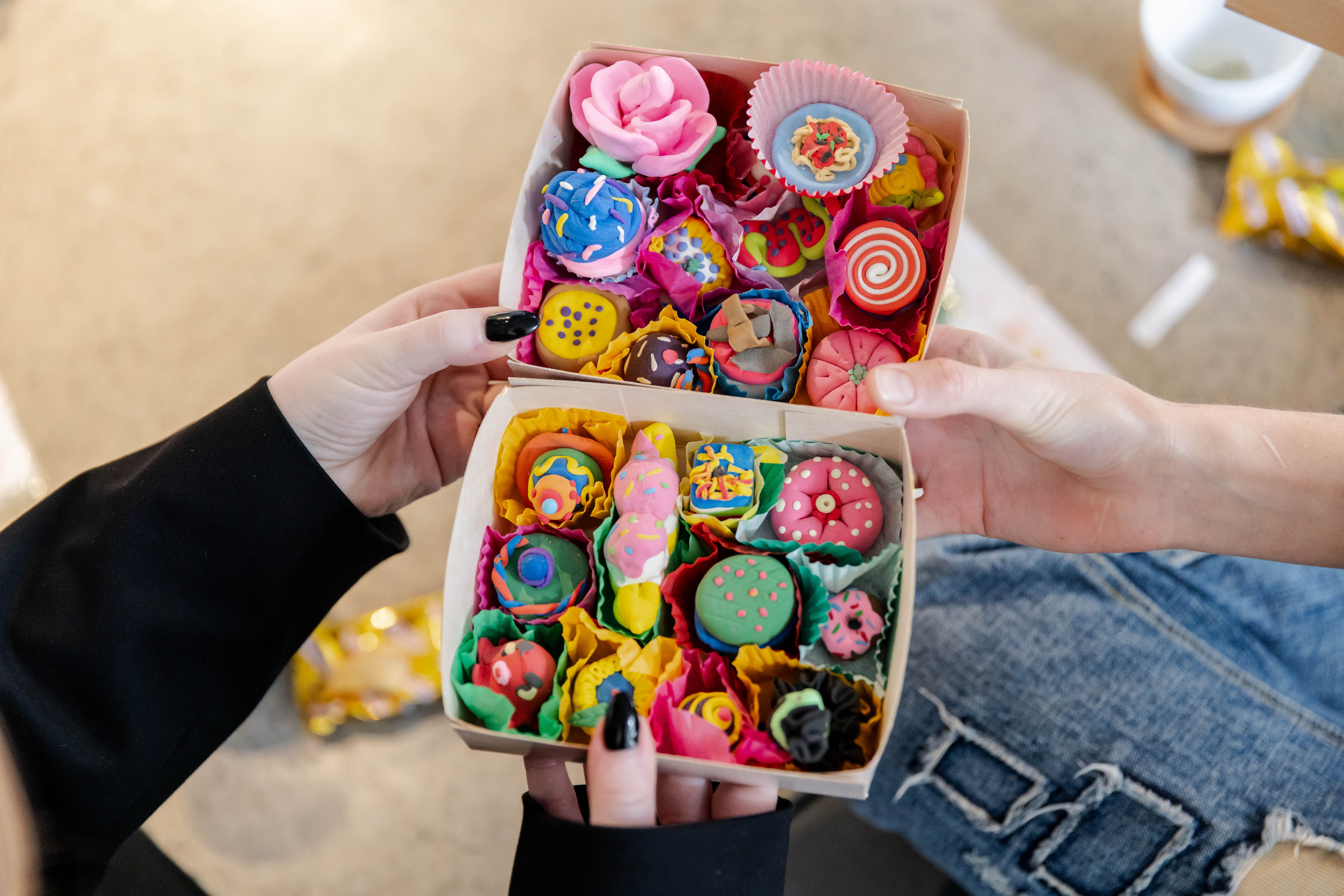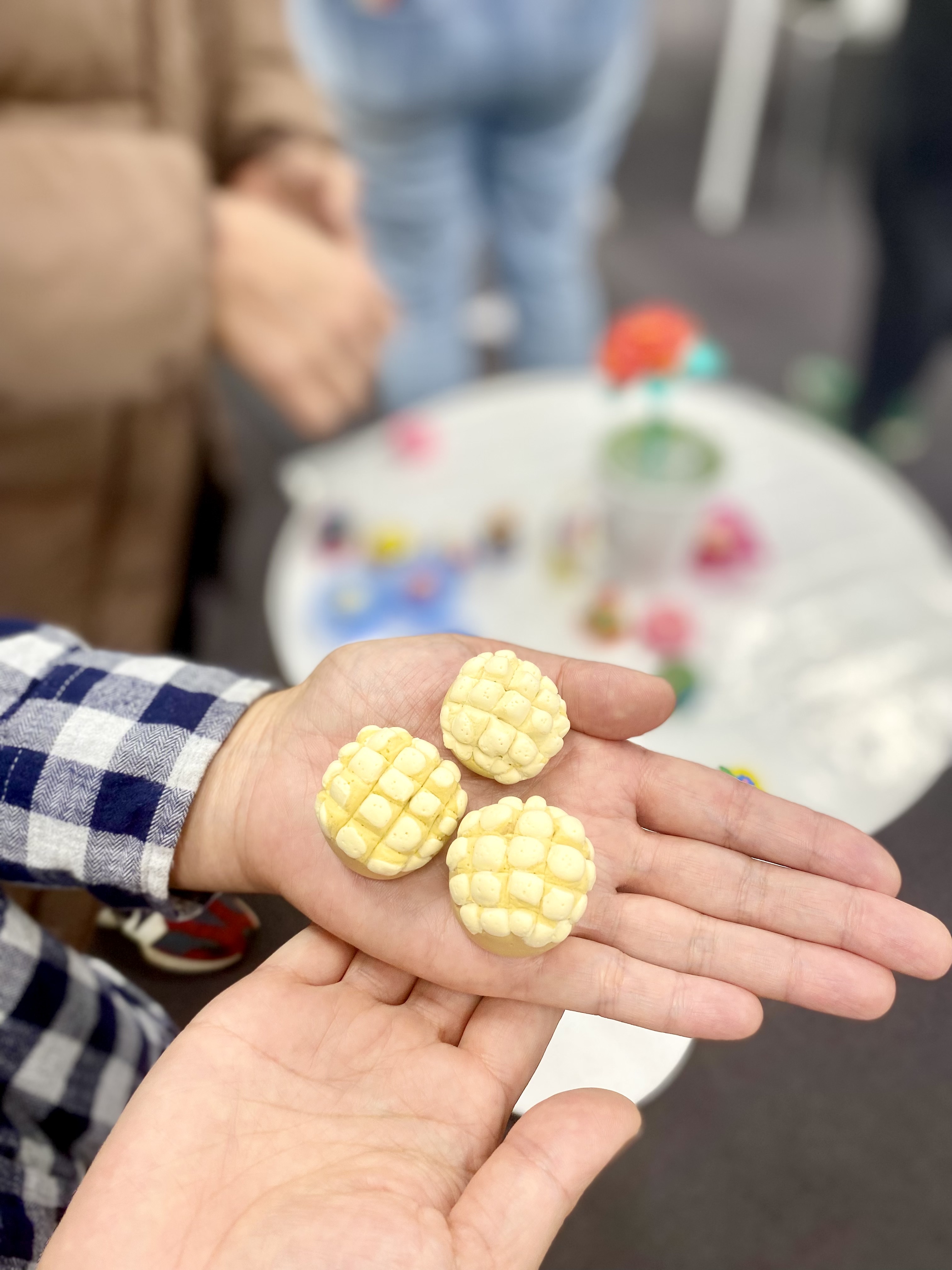 Making colourful clay fortune cookies workshop with interns Ryuichi Fujimura and Carlos Gomes at the Campsie Street Food Festival 2022, curator by Dylan Goh. Photo credit by Jason Nichol