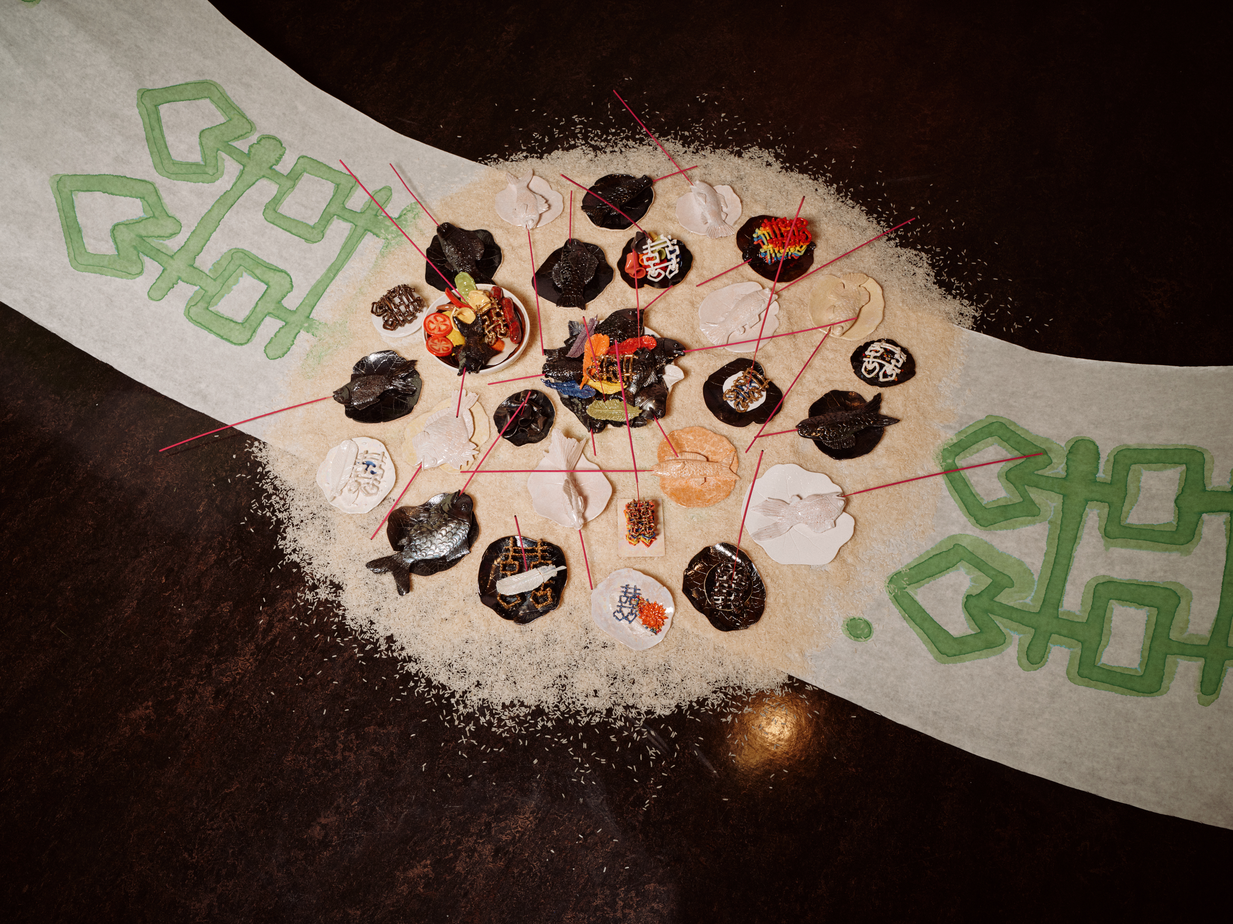Through a unique blend of ceramic and pandan drawings in an installation, live performance, paper cutting workshop and personal narrative, this inter-faith, queer artist, of Peranakan-Chinese ancestry from Indonesia brings to life the rituals and memories that shape their identity. Fairy Tales from the Celestial Garden is a meaningful celebration of cultural diversity and kinship, offering a place for reflection, (re-)interpretation, sharing of insights, enlightenment and connection. In reinterpreting symbols of tradition and engaging with the sacred and ordinary acts of cooking and offering food, Jayanto invites viewers to reflect on their own relationships with their ancestors, heritage, family and community. In a world that often marginalises minorities, Fairy Tales from the Celestial Garden provides a unique and powerful message of the importance of remembering, celebrating diversity, and making new connections in the present.