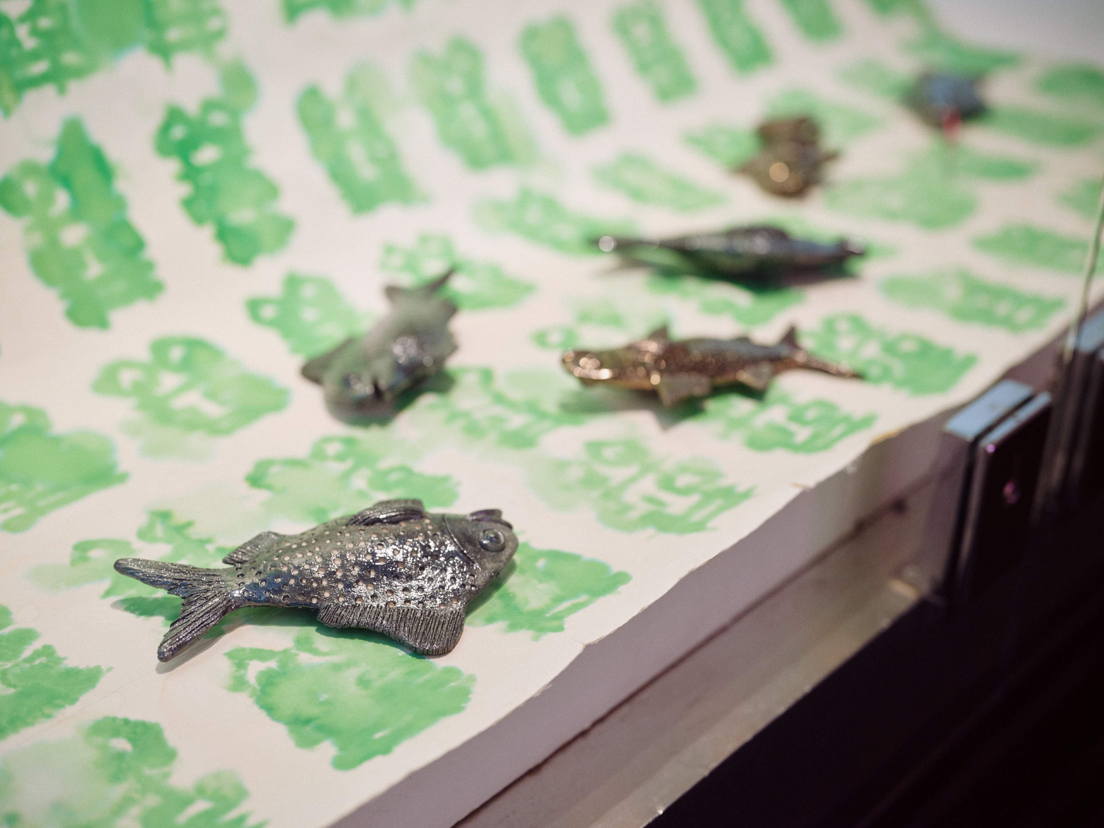 The memories of Jayanto’s Christian mother, Naomi Waginem/Lim A. Poe (whose ‘husband’ was of Taoist faith), preparing meals for family gatherings plays a front- and- central role in their work. In the artist’s words, ’My mother had asked me to harvest the pandan leaves and fish from our little garden.’ These ordinary tasks are imbued with emotional weight and serve as a reminder of Jayanto’s mother and her generosity and care. In returning to these rituals, the artist preserves the essence of their family’s cultural practices while also offering ways of re- imagining, interpreting and understanding its meaning. The ceramic work and drawings are thus not just representations of the past but are living and evolving symbols that continue to shape the artist’s present and future as an inter-faith, queer Australian migrant with a Peranakan- Chinese ancestry from Indonesia.