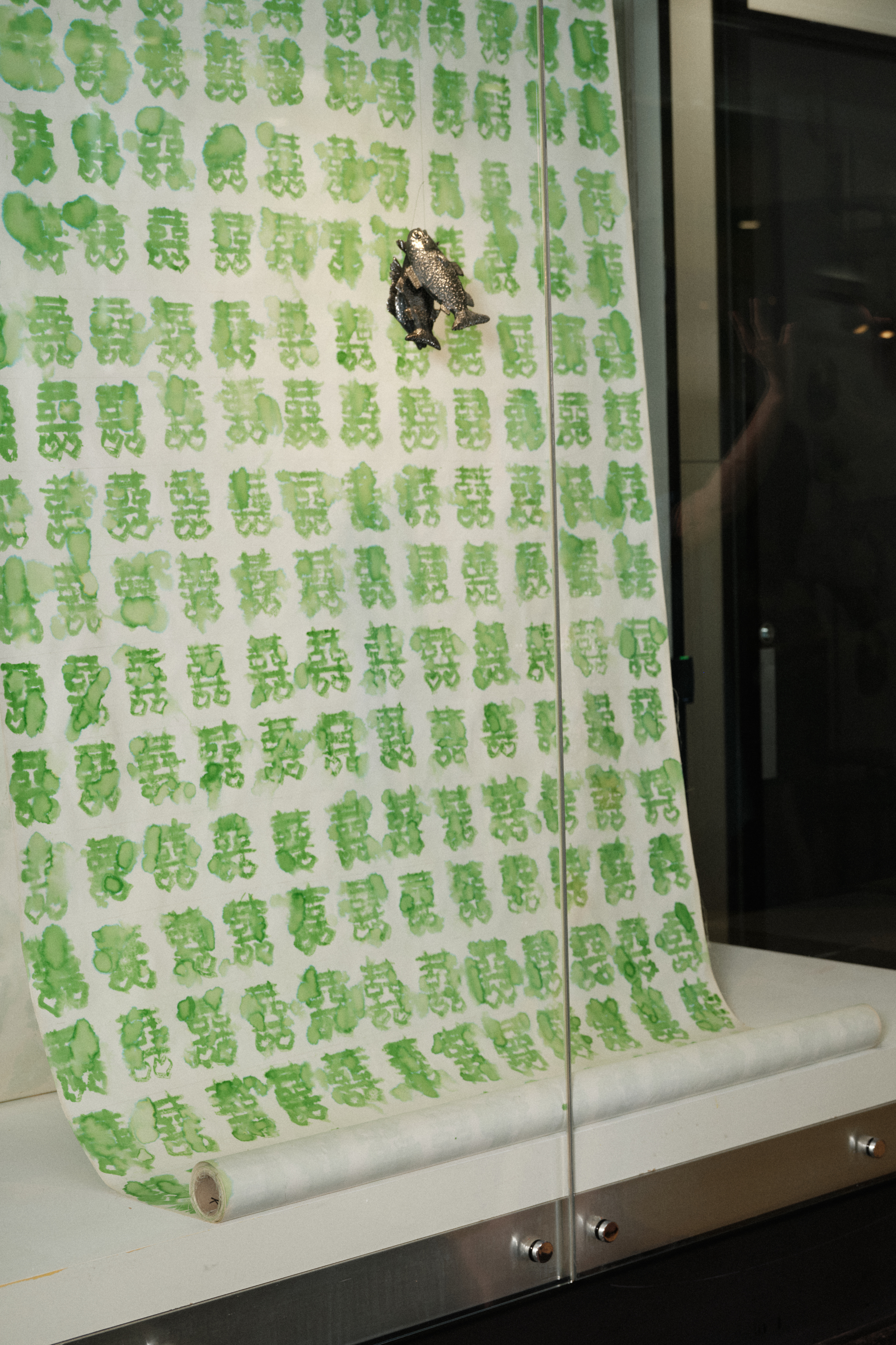 In the context of this project, Jayanto also reinterprets the traditional Chinese symbol of Double Happiness, a ligature and commonly associated with marriage and familial unity. The symbol, which features two intertwined Chinese characters for joy, is often prominent in wedding decorations and other celebratory contexts. The artist deviates from its conventional use, drawing the symbol in ways that emphasises harmony and balance in various forms of kinship, a personal homage to the artist’s queer identity and a powerful statement emphasising love and kinship beyond heteronormative boundaries.